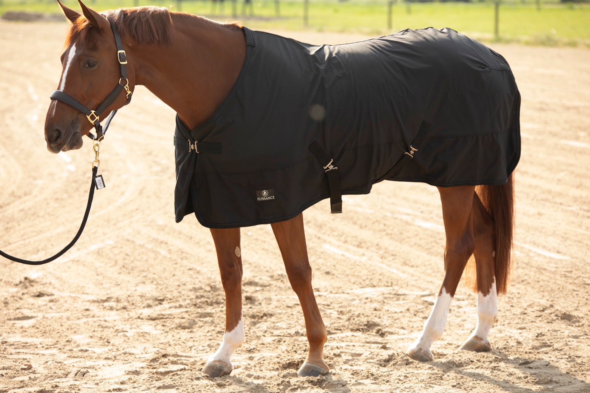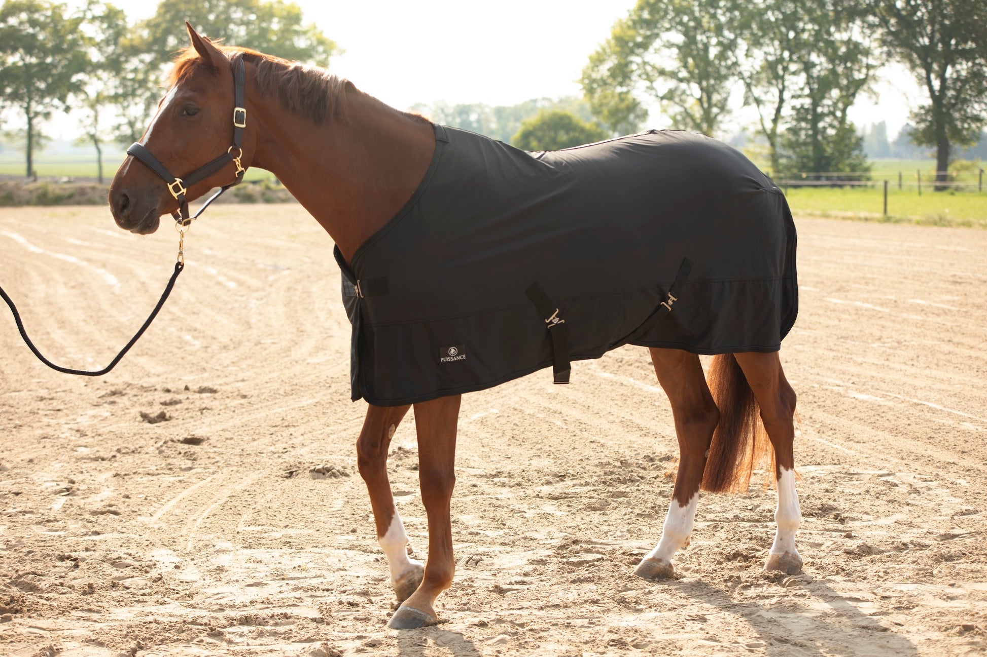 Dit is écht een all-round deken. De buitenkant is gemaakt van softshell, de binnenkant is fleece. Dit maakt dat het deken super ademend is en snel vocht en zweet afvoert. Dit deken is geschikt om te gebruiken na het wassen, na het werk, in de stal of op de vrachtwagen. Schavelingen en stro blijven niet kleven dus geen stress als je paard gaat rollen Het deken is voorzien van vaste buikriemen en een plastic staartriem.