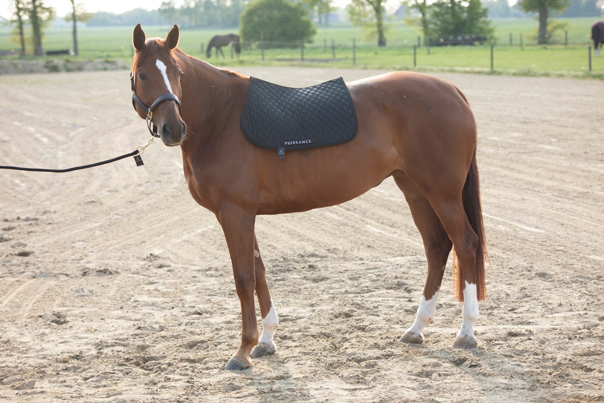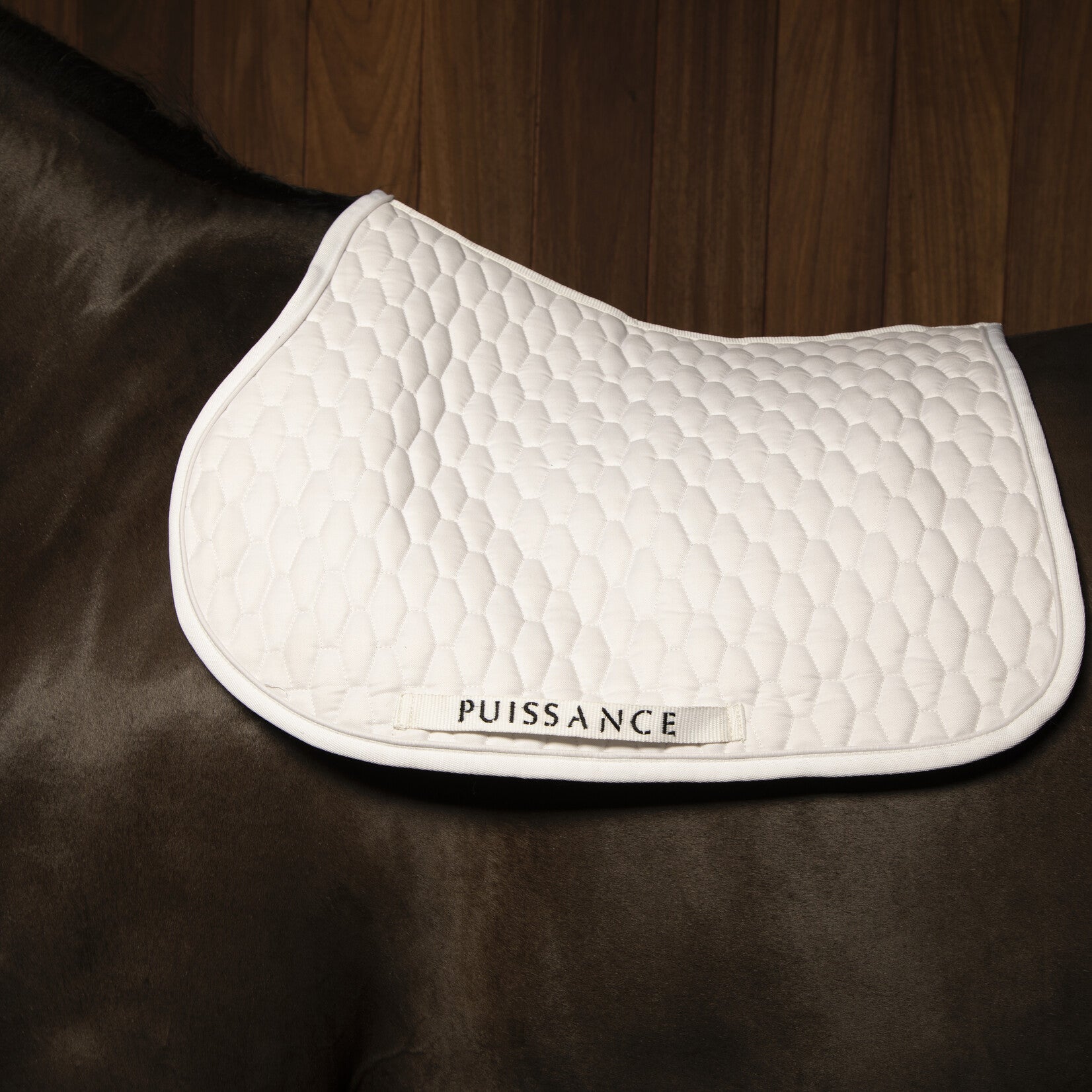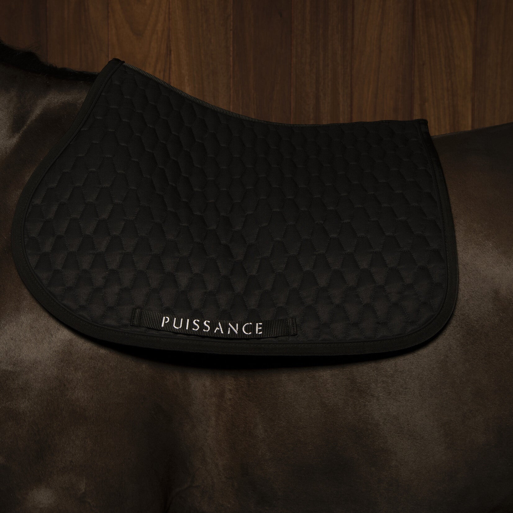 Klassevol zadeldoek met een mooi, zeshoekig stikselpatroon. Sportieve vorm en uitstraling. Toon op toon piping en afwerking.